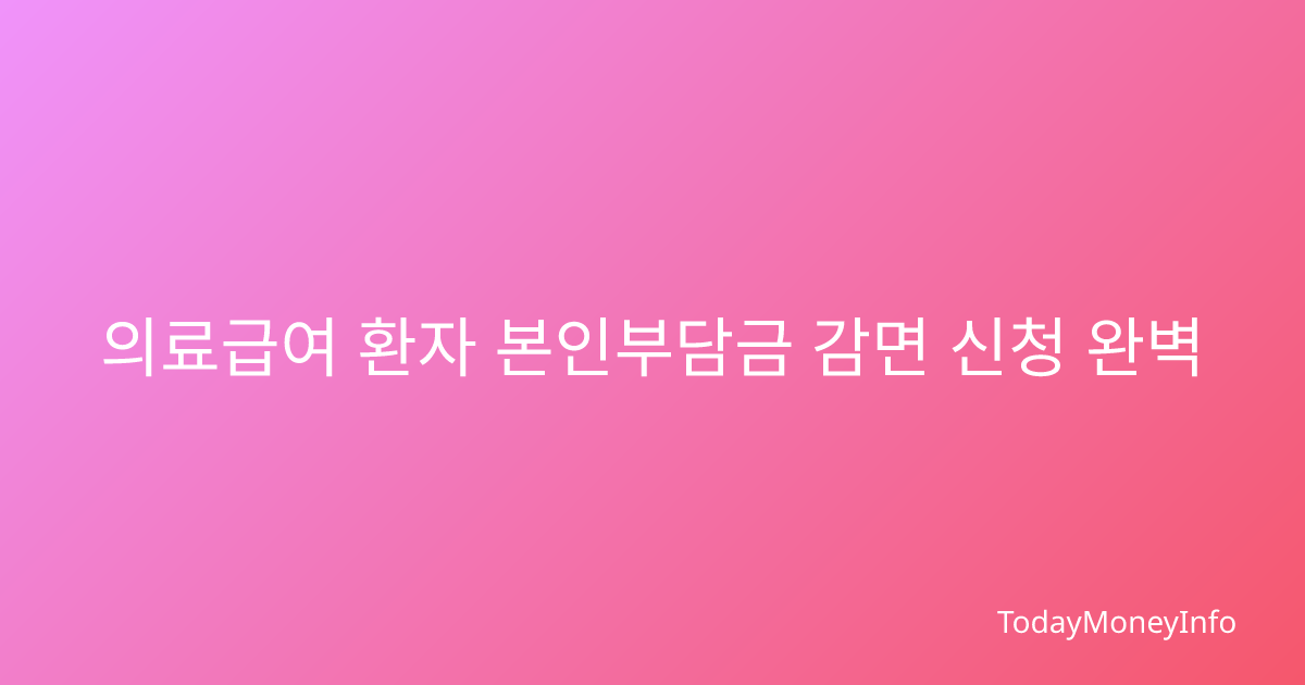 의료급여 환자 본인부담금 감면 신청 방법을 2026년 최신 정보로 완벽 정리. 필요 서류, 신청 절차, 감면 혜택까지 한번에 해결하세요.