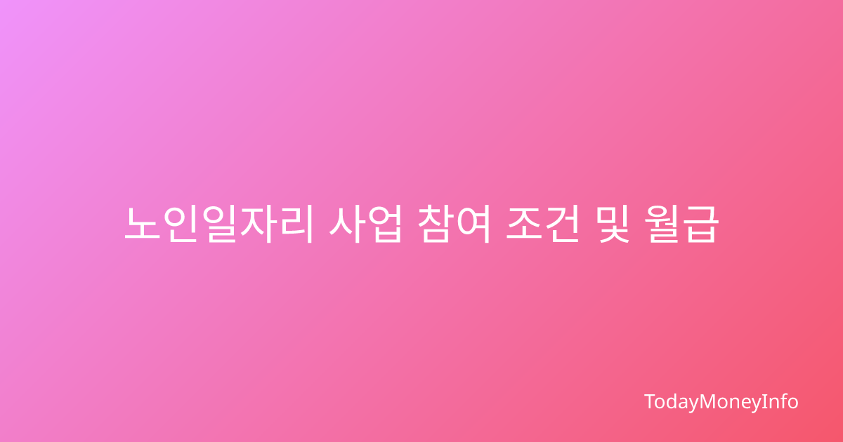 2026년 노인일자리 사업 참여 조건, 월급, 신청 방법을 상세히 정리했습니다. 만 65세 이상 소득 기준 충족 시 참여 가능하며 월 30만원에서 100만원까지 활동비를 받을 수 있습니다.