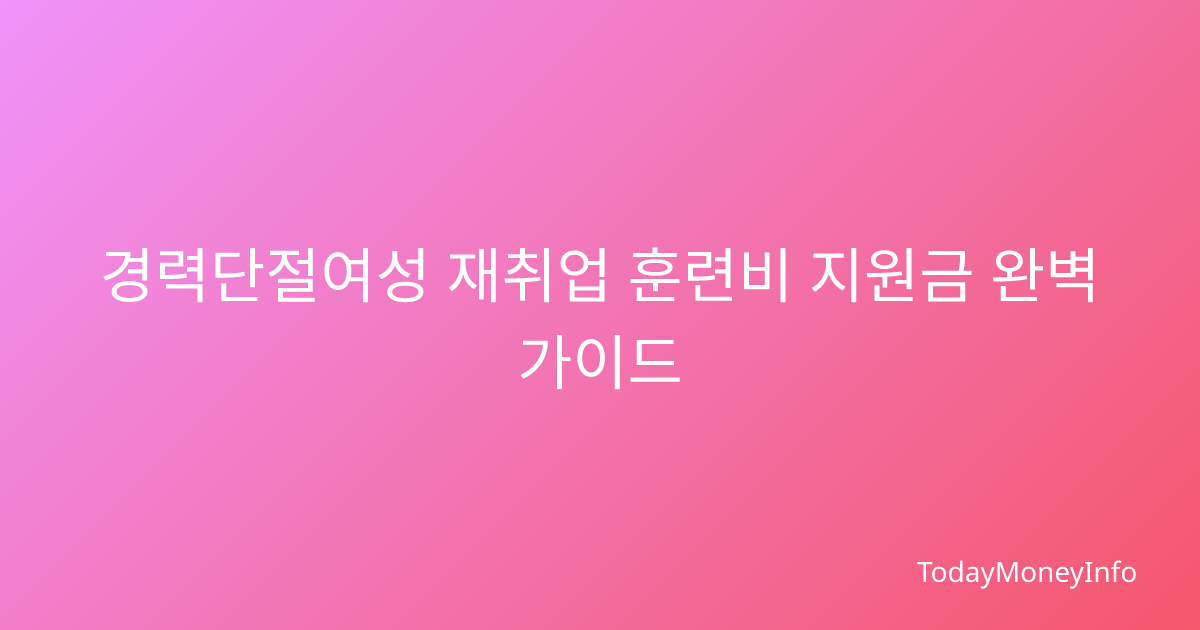 경력단절여성 재취업 훈련비 지원금 완벽 가이드 2026