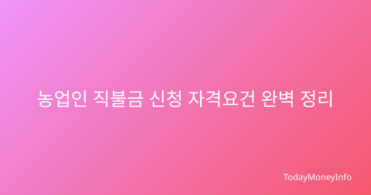 2026년 농업인 직불금 신청 자격요건, 소득기준, 필요서류, 신청절차를 완벽 정리. 성공 신청을 위한 실용적 팁까지 한번에 확인하세요.