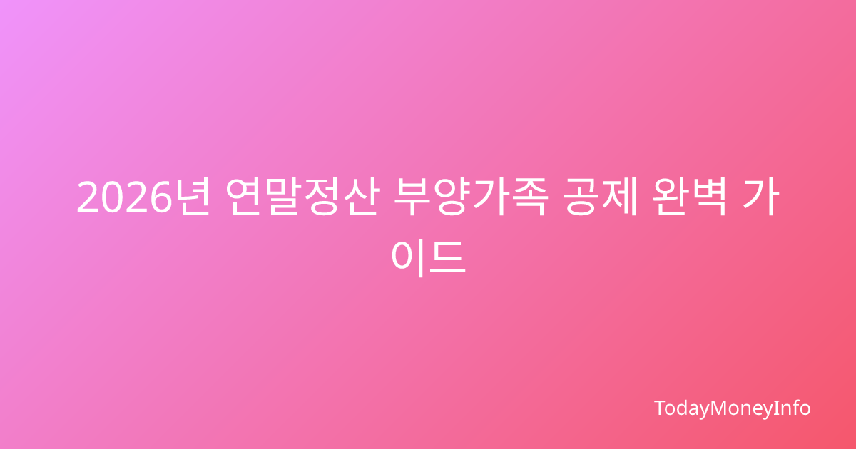2026년 연말정산 부양가족 공제 조건을 소득기준, 나이기준, 신청방법까지 한번에 정리. 놓치기 쉬운 주의사항과 추가공제 혜택까지 완벽 가이드로 확인하세요.