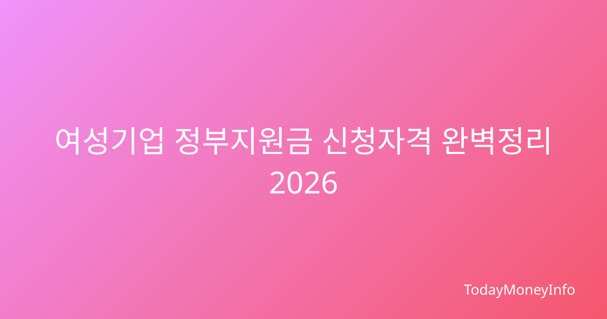 여성기업 정부지원금 신청자격 완벽정리 2026