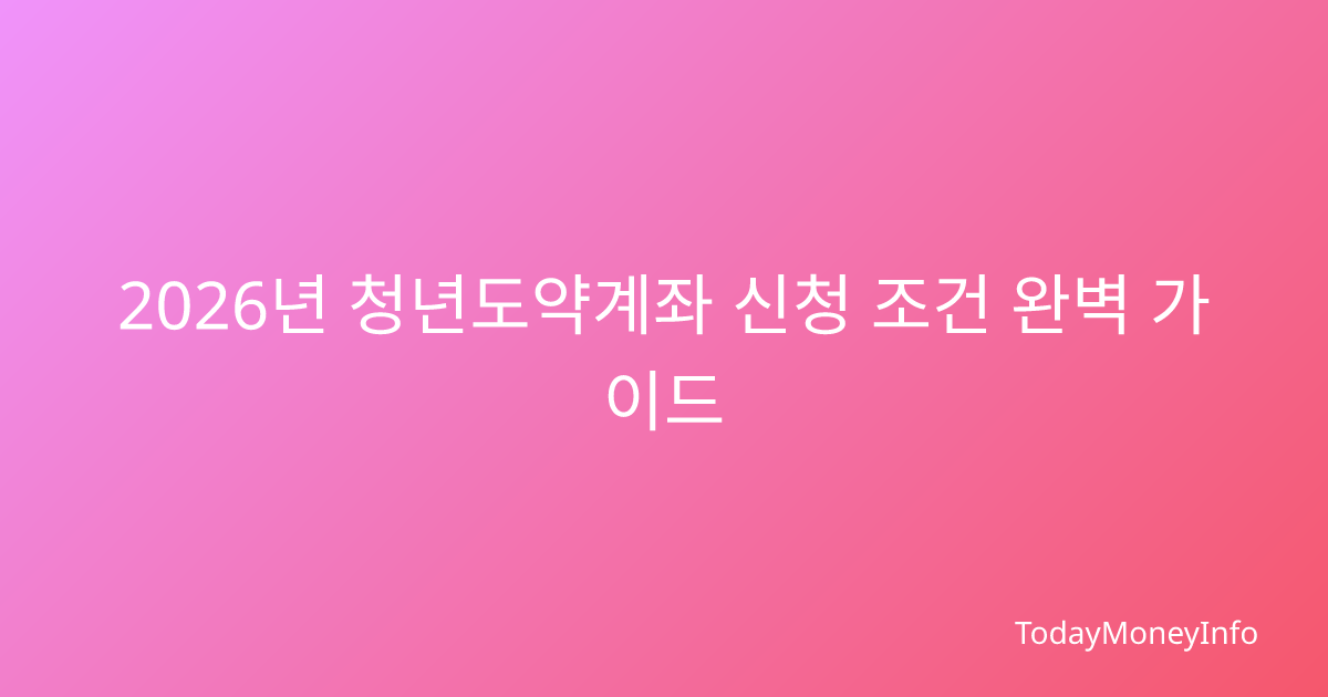 2026년 청년도약계좌 신청 자격 조건 완전 정리 청년도약계좌 신청을 준비하고 계시는데 자격 조건이 복잡해서 헷갈리시나요? 매년 조금씩 변경되는 신청 요건 때문에 정확한 정보를 찾기 어려우시죠? 2026년에도 청년도